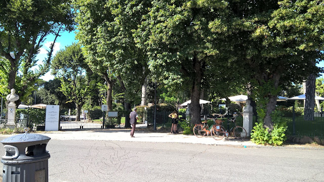 Eu aqui, nem sabia para onde estava a ir, mas vi uma sombrinha e aproveitei, porque eu já estava a derreter... Agora sei que estava na Viale della Trinità dei Monti.