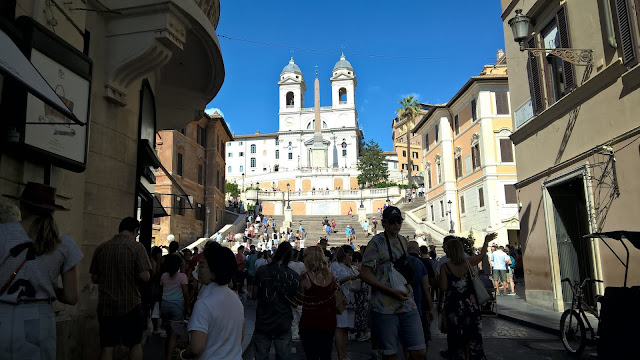 Esta escadaria é um grande ponto de encontro entre os romanos e os turistas... Pelos vistos é tradição nos sentarmos nas escadas... Já nem me lembro se me cheguei a sentar, mas acho que não, pois eu estava ansiosa por chegar lá acima, por explorar, e estava muito calor...